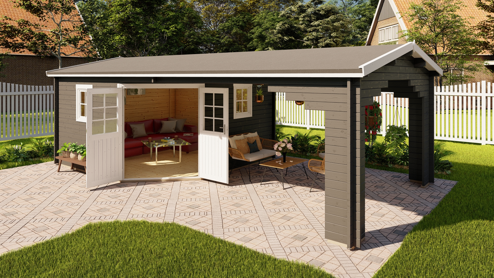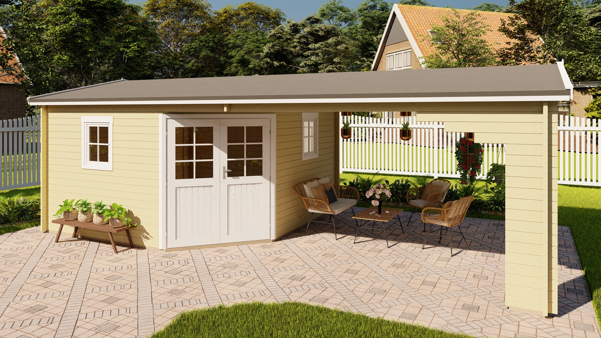 rechte oder linke Seite des Hauses angebaut werden ! |