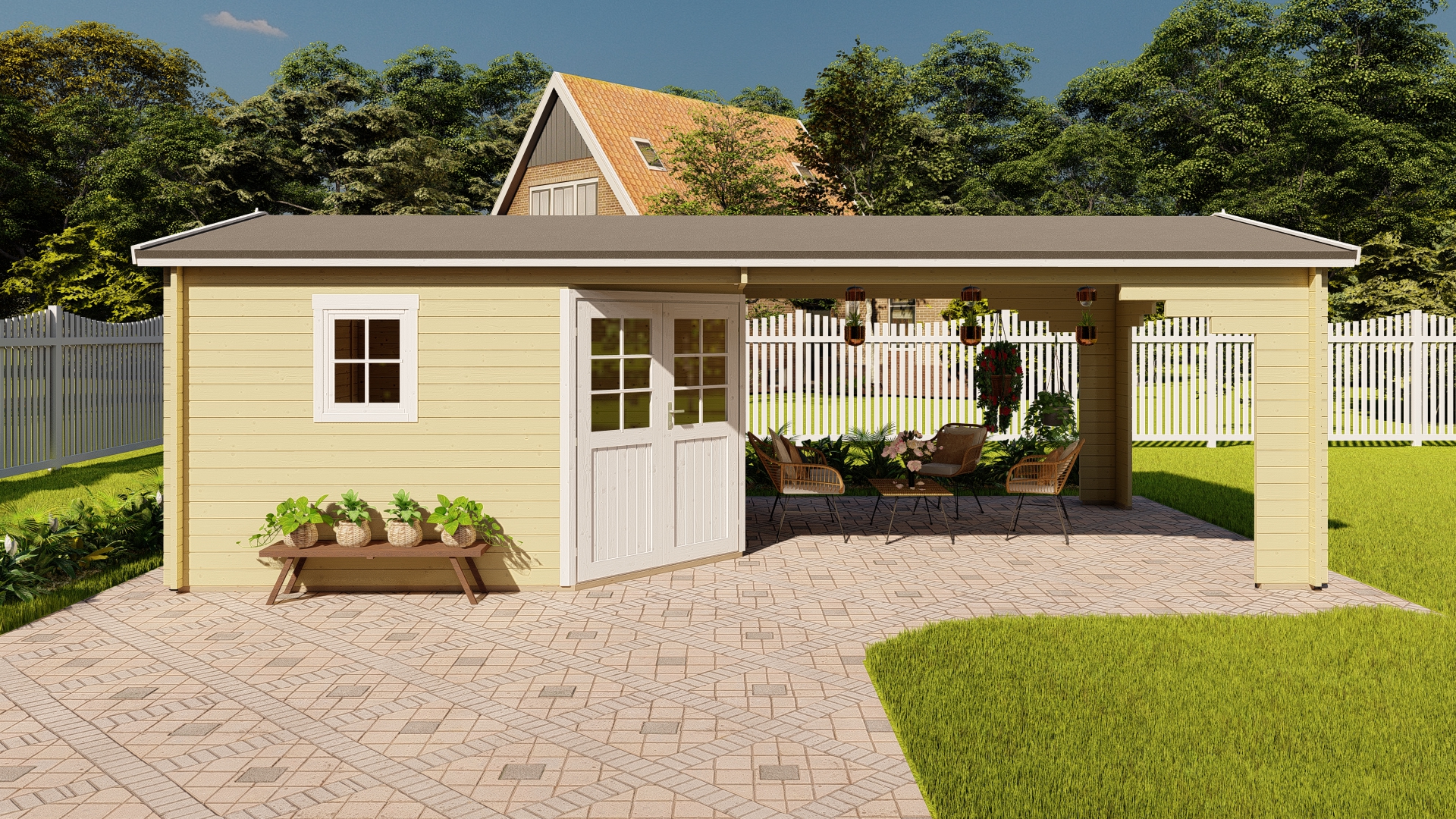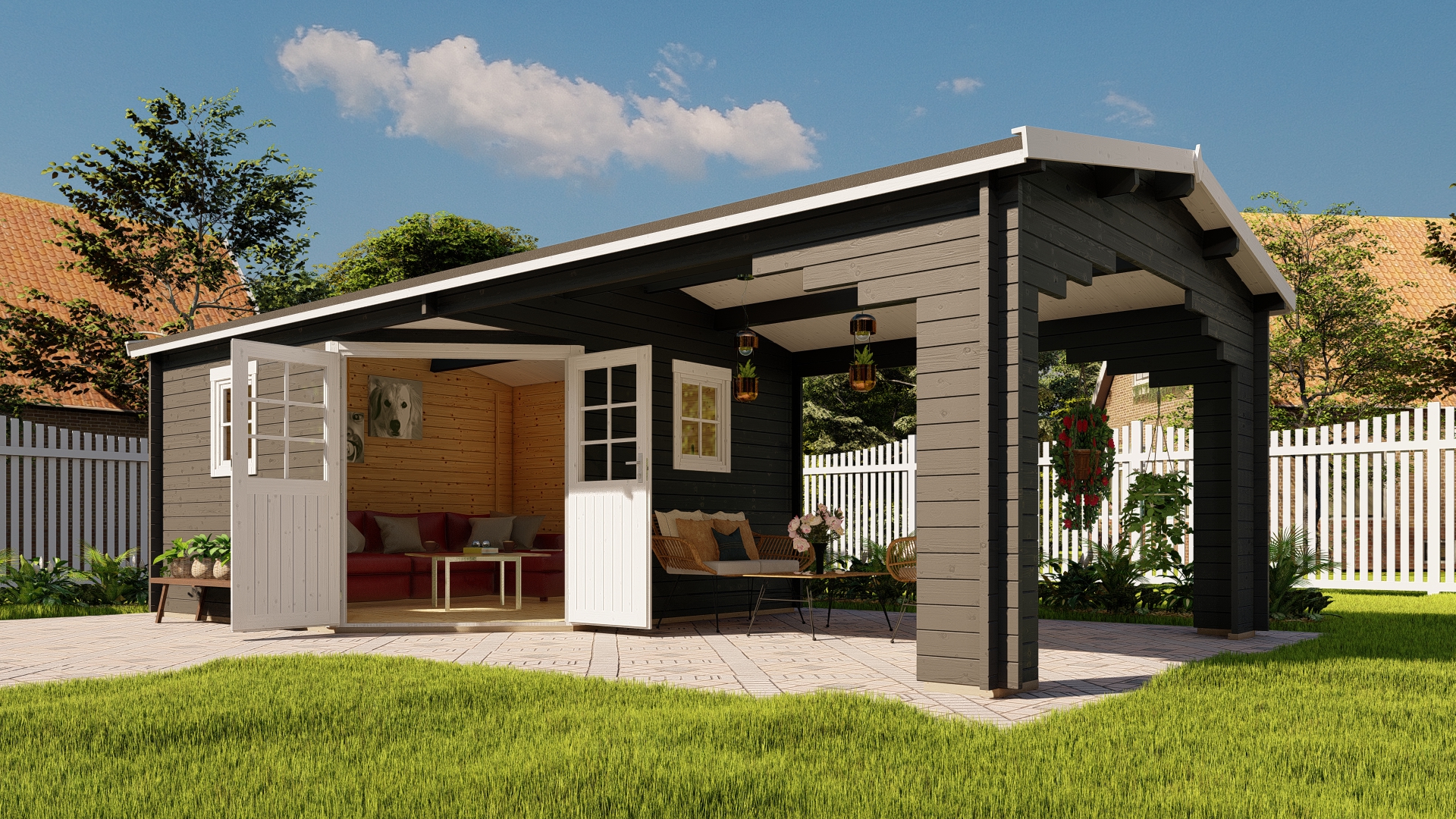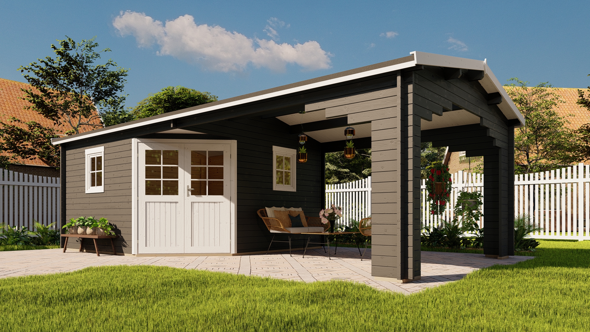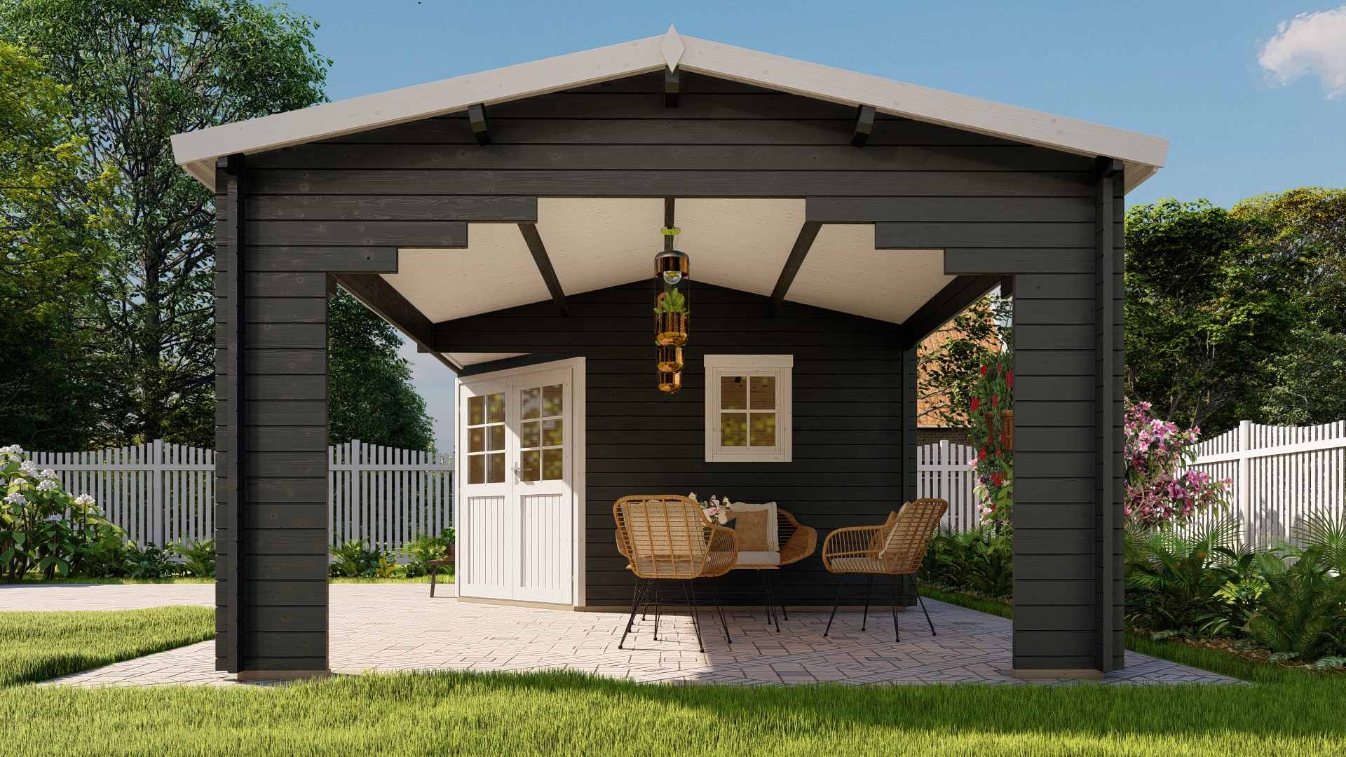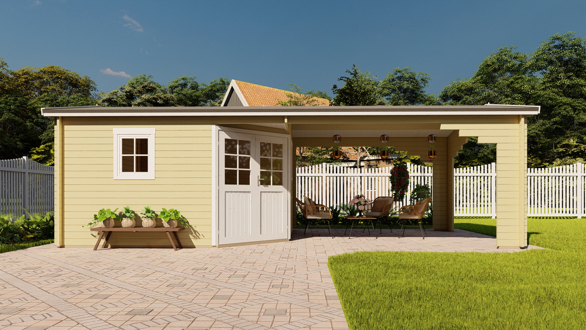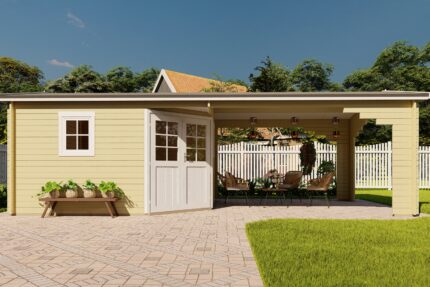 | Das Seitendach kann wahlweise auf die